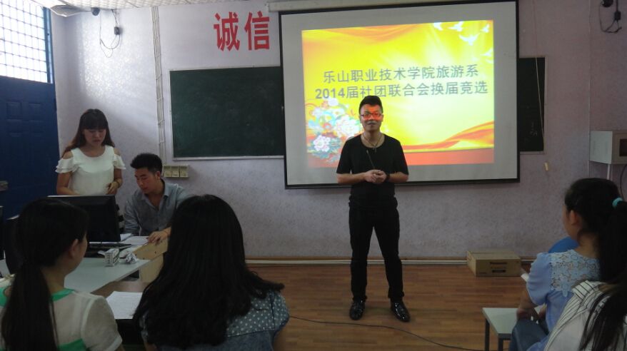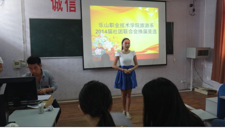 6月17日下午3点半我系在电子阅览室进行了2014届社团联合会的换届竞选。由团委老师刘诗妍及各社联社长担任评委。