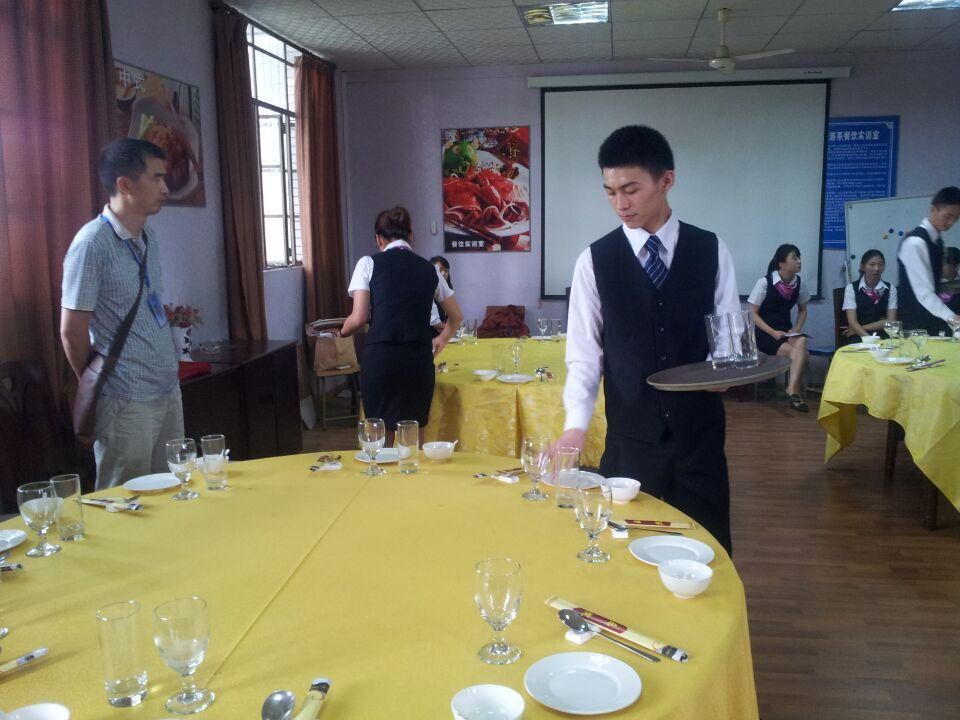 按照旅游酒店管理专业的人才培养方案及对高职大学生的职业技术技能型人才的培养要求,2015年6月期间旅游管理专业学生共27名同学参加了中级餐厅服务员的职业资格的技能培训。培训结束后,于2015 年7月4日下午15:30—17:30,参加此次职业资格考试的27名学生在普专旅游管理13级1班教室中级餐厅服务员理论考试,在7月5日下午13点至18点在旅游系二楼餐饮实训室参加了中级餐厅服务员实操考试。