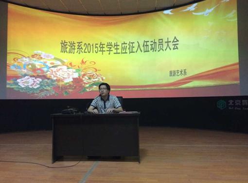 5月31日晚上七点半,旅游系在3D实训室开展了2015年的大学生应征入伍动员大会,由黄剑波主任给同学们进行了征兵入伍的宣讲。