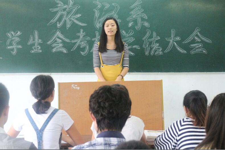 旅游系于6月4日下午1时在旅游12-1教室举行了学生会考核总结大会,参加本次大会的是12级学生干部和13级学生会后备干部,学管办胡杨老师到会与广大学生干部进行深入交流。