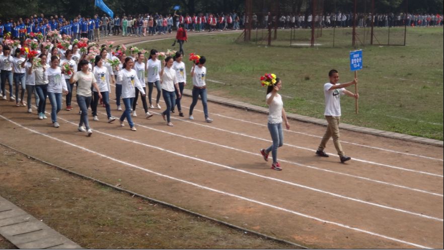开幕式的第一部分,跟随着运动会徽,四个系49各班分别入场,响亮的口号、整齐地步伐,统一的穿着,他们气势昂扬,神采奕奕地走过主席台,展现出各班独特的魅力和个性。从而突出了同学们的运动精神。