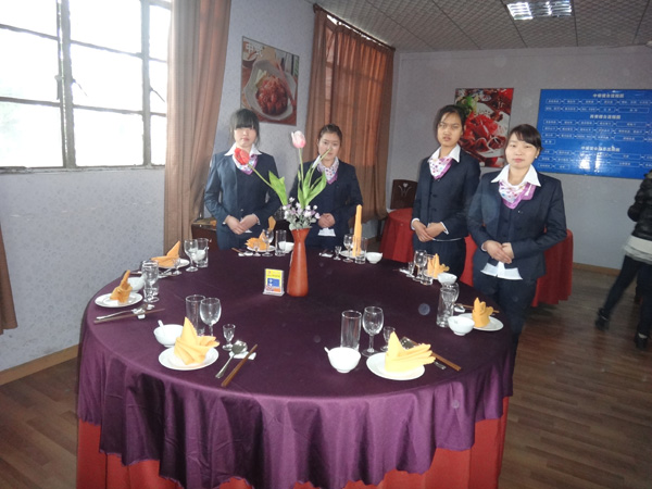 2012年12月14日伟德国际victor1946旅游系普专餐饮及普专旅游管理班级,开始了一年一度的技能鉴定。各班同学进行了技能检测,陈瑞祥老师、胡文才老师、刘海老师对同学们摆台进行了评估与打分。