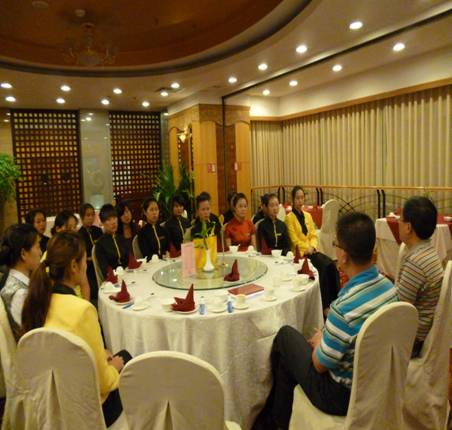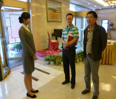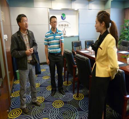 2012年9月20日,旅游系李忠东书记与黄剑波副主任前往成都沃特酒店看望正在该酒店实训的普专餐饮管理专业11级学生。