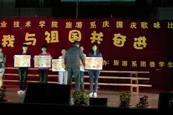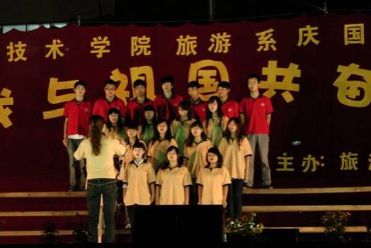 9月29日晚19点,由旅游系举办的庆国庆“我与祖国共奋进”歌咏比赛在新村校区隆重举行,系领导和旅游系师生共同观看了此次演出。