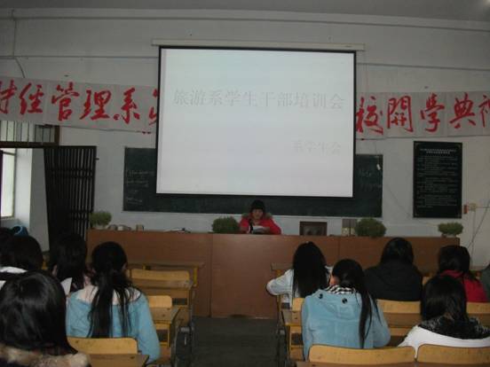 出席本次培训会的有:学生会指导老师胡杨、学生会主席钟慧林、学生会副主席陈马洁以及旅游系学生会全体干部、干事。