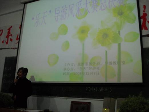 2009年12月7日19点,旅游系举办的导游技能大赛在综合楼4楼电教室举行,旅游系近百人师生出席了此次盛会,参加本次导游技能大赛的10名选手都是经过初赛严格选拔而来,最终来自普专导游08-1班的李艳红获得此次大赛的第一名,二、三名分别被中专旅游08-1和普专旅游游08-1班的同学获得。这次导游技能大赛一方面是为检验同学们对所学专业知识的掌握情况,另一方面也是为四川省导游资格证考试(口试)打下良好的基础。旅游系领导邵其会、黄剑波到会作了重要讲话并担任评委,担任本次大赛评委的还有付洪利、王峻峰、杨帅及乐山康辉旅行社的几名导游。(文/图:杨帅)