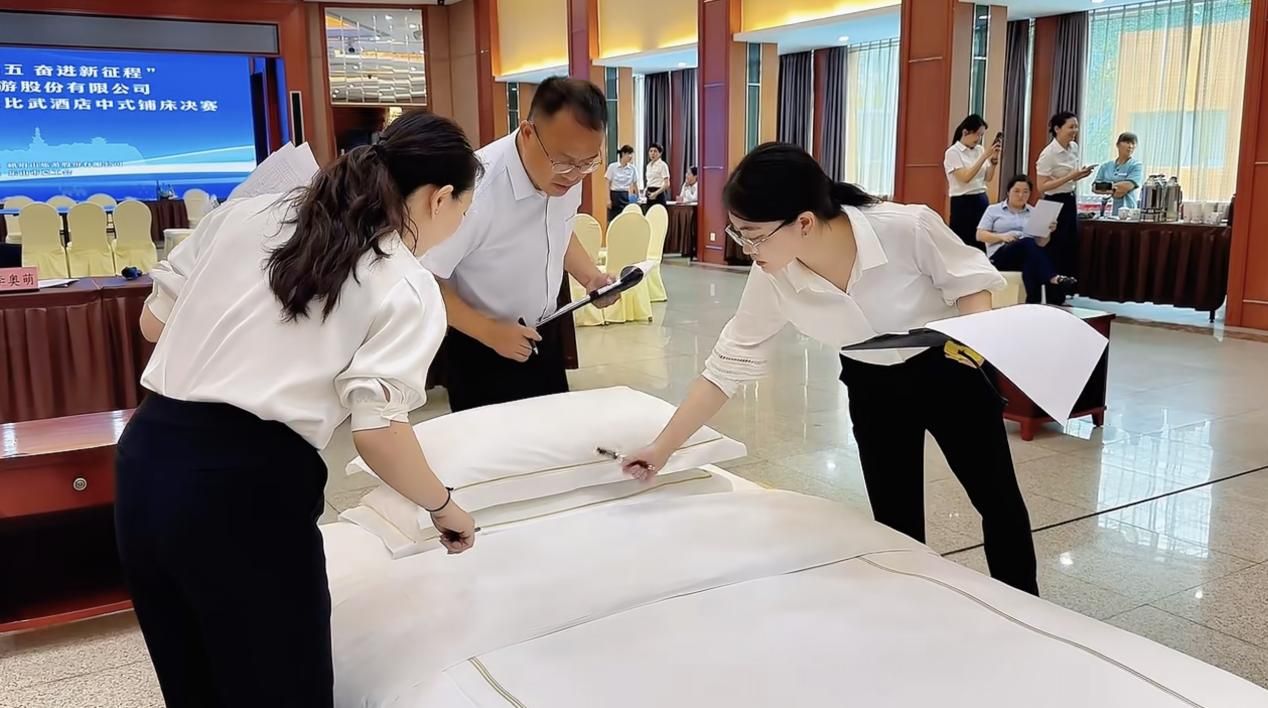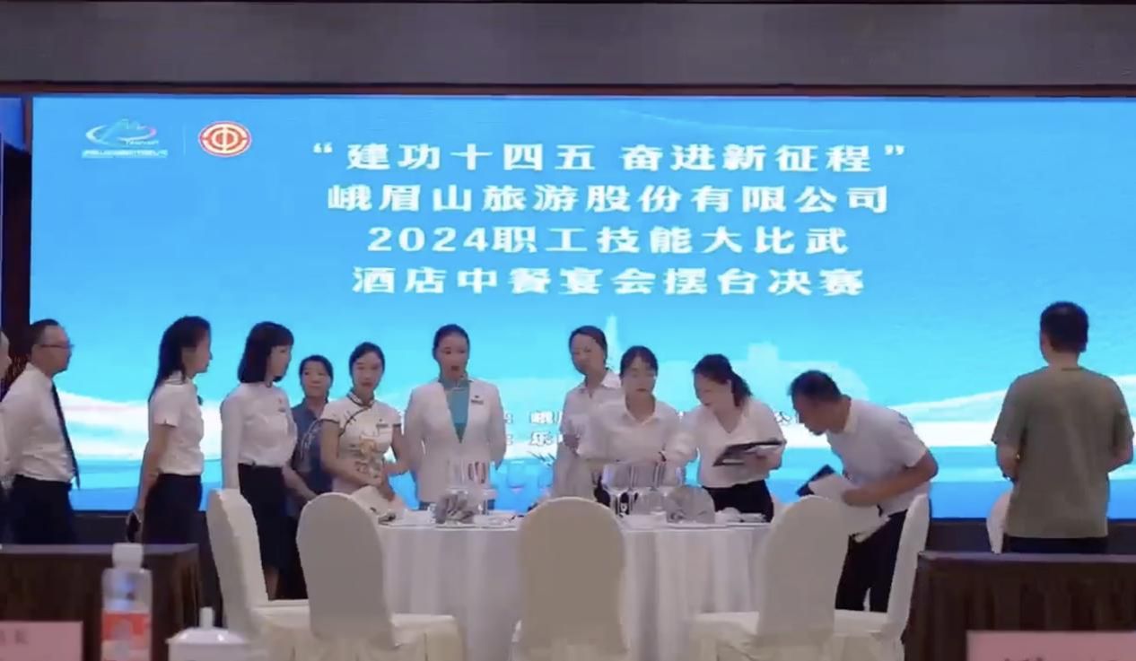 2024年6月21日由峨眉山旅游股份有限公司主办的“奋进新征程”2024年职工技能大比武活动在峨眉山旅游股份有限公司峨眉山大酒店分公司举办,伟德文化旅游学院教师李奥萌受邀参与酒店中式宴会摆台、酒店中式铺床决赛裁判工作,本项目决赛共有30多位酒店职工参加。