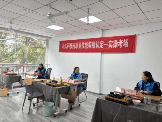 2025年3月11日下午2:00-6:00,文化旅游学院周文英老师受乐山市德艺职业技能培训学校的邀请,对参加茶艺师四级培训的32名学员进行鉴定。周老师严格按照茶艺师国家职业技能等级标准要求进行打分测评,做到鉴定公平、公正。
