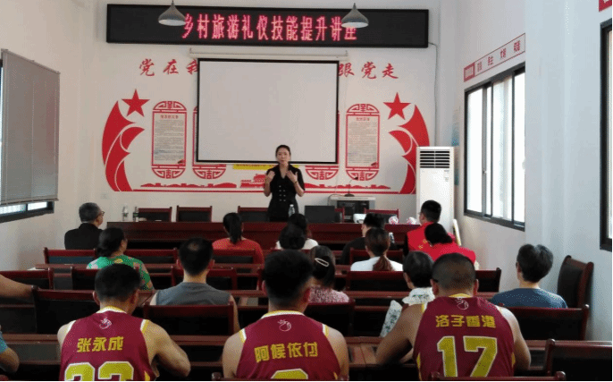 朱文彬书记指导“村BA”篮球比赛,丰富村民精神文化生活;党员王峻峰以“一笔特殊党费”为题,为村党员干部和村民代表带来了一堂生动的专题党课;党员刘梦媛以“理论讲解+现场演示+实操指导”的方式,提升乡村旅游服务礼仪水平。