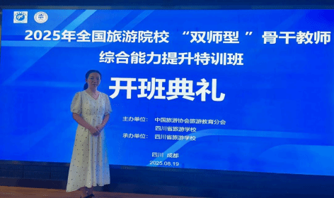 为进一步加强我院“双师型”教师队伍建设,提升旅游大类专业教师教学创新与产业服务能力,8月18日至23日,文化旅游学院教师赵太萍赴成都参加由中国旅游协会旅游教育分会与四川省旅游学校联合主办的“2025年全国旅游院校‘双师型’骨干教师综合能力提升特训班”。
