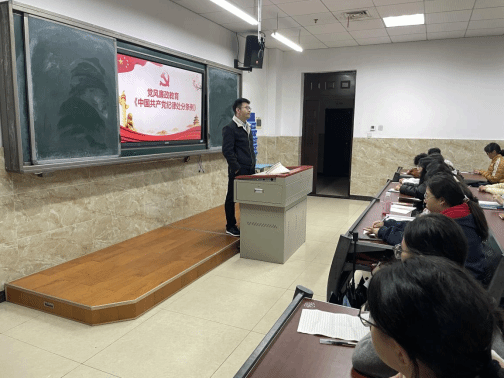 文化旅游学院于11月6日下午18:00在教学楼1B309开展了时长1小时的党风廉政教育课程,帮助同学们更好的了解《中国共产党纪律处分条例》。本次活动由张雷老师带领学习。