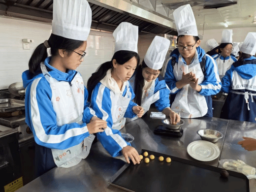 2025年11月4日,来自乐山市沙湾区踏水镇初级中学一年级三班、三年级二班共95名学生参加了伟德文化旅游学院烹饪实训中心组织开展的美食体验研学实践活动。本次活动由张雷、马世新老师负责组织,在活动过程中烹饪实训中心胡文才、廖庆才、刘向阳、陈燊四位老师精心演示并讲解了乐山美食豆腐脑、月饼、西点制作的过程,每一位学生在老师们的帮助下亲手体验了各类美食的制作的乐趣,脸上洋溢着成就感,在看、学、做、品的沉浸式体验中,开启了一场兼具味觉享受与文化探索的研学之旅。
