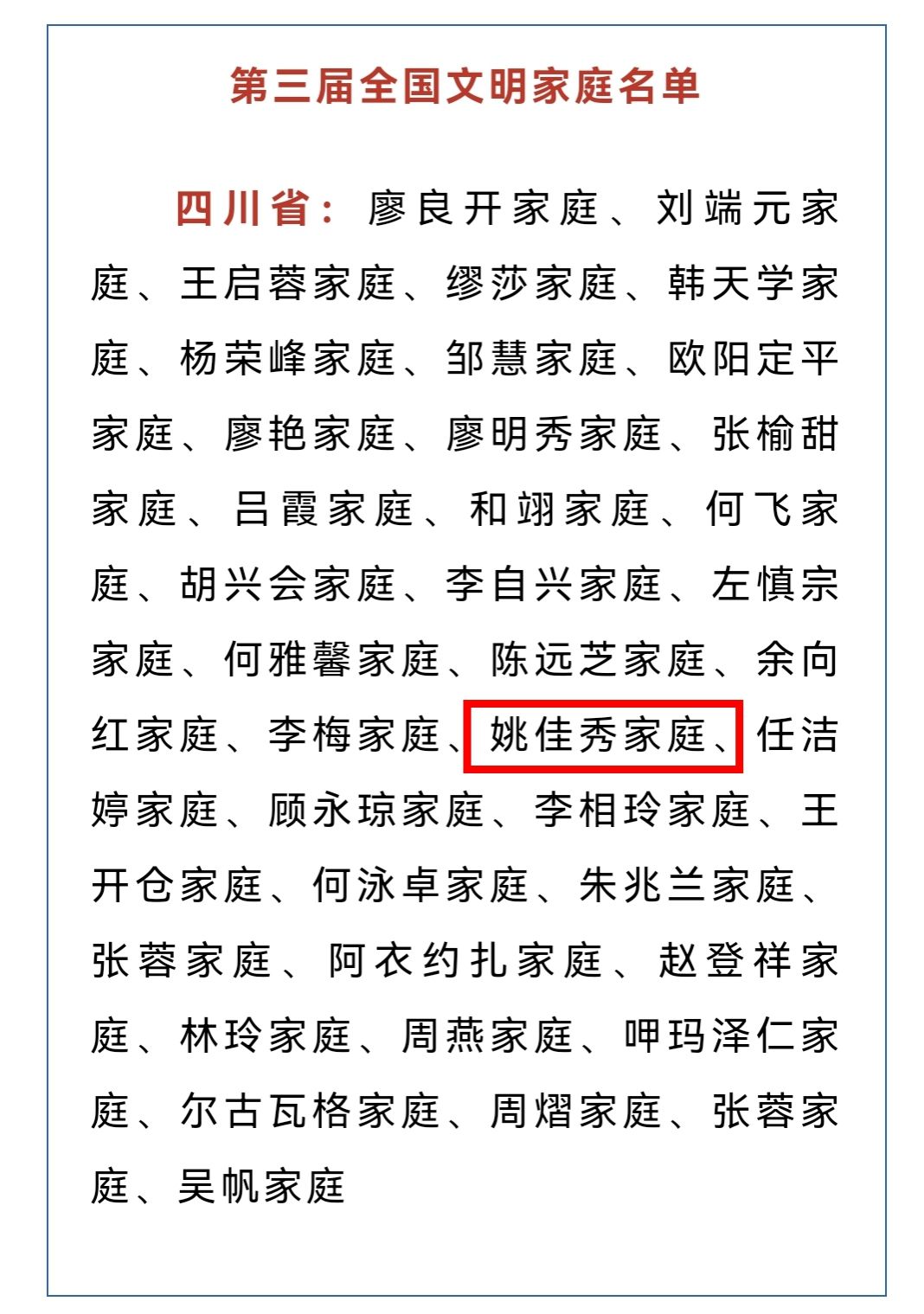 2025年5月23日,中央宣传思想文化工作领导小组发布《关于认定命名第七届全国文明城市、文明村镇、文明单位和第三届全国文明家庭、文明校园的决定》,决定授予尚丽新家庭等798户家庭全国文明家庭称号。其中,伟德马克思主义学院副院长姚佳秀家庭荣获该项荣誉。
