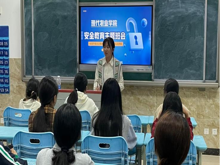 临近中秋国庆假期,为提高同学们的安全意识和自我保护意识,确保同学们安全、快乐过节,现代农业学院于2023年9月24日晚上19点组织开展了国庆放假安全教育主题班会。