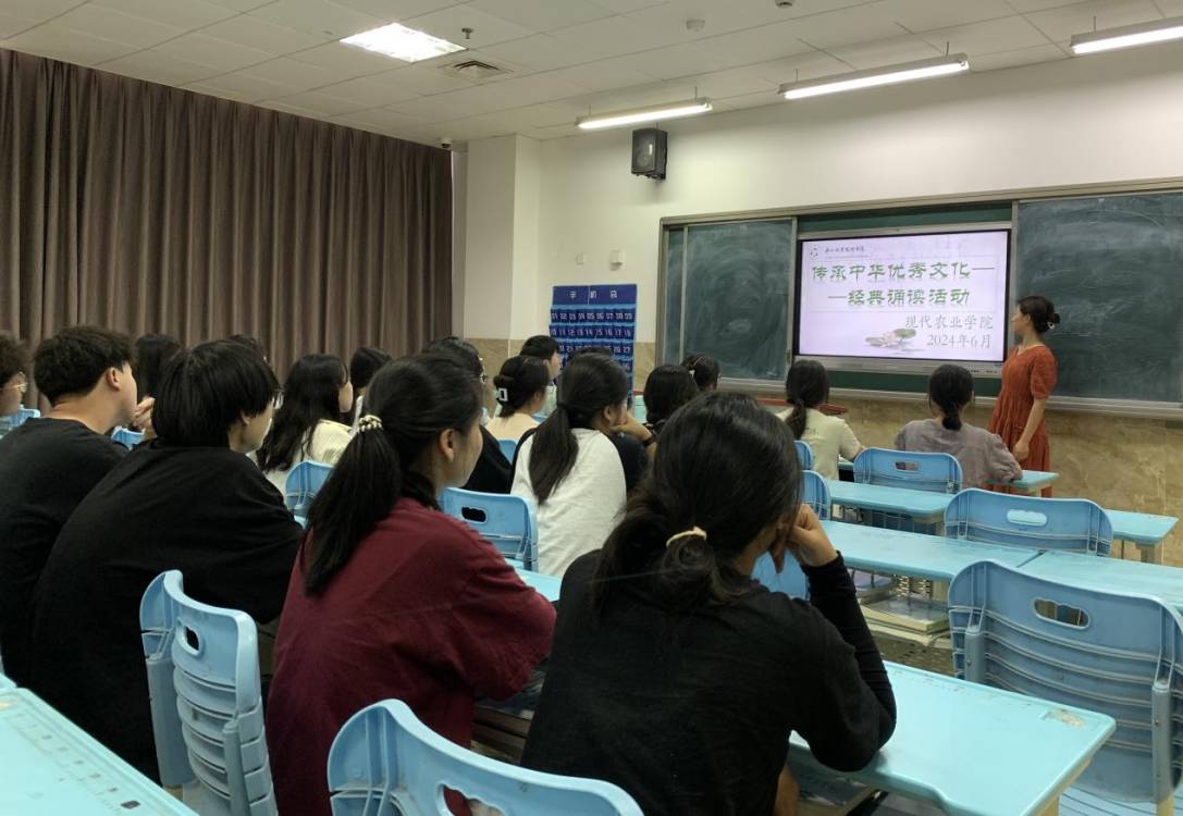 为诠释中华优秀文化内涵、彰显中华语言文化魅力、弘扬民族自信,现代农业学院于2024年5月26日18:00在1b310开展“传承中华优秀文化——经典诵读”活动。现代农业学院党总支副书记宋建群及70余名学生参加了此次活动。