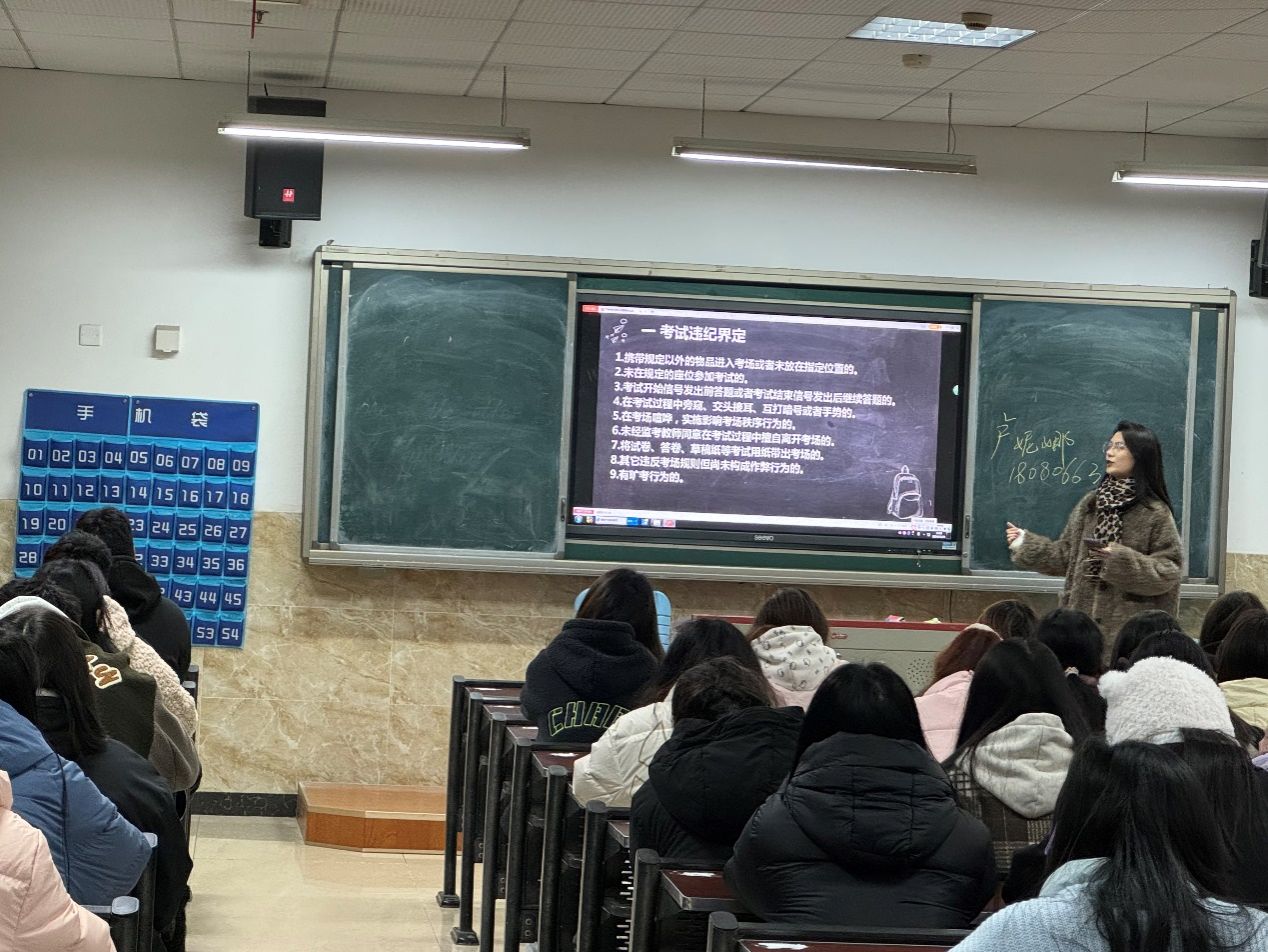 为了增强学生诚信意识,打造公平公正的考试环境,营造诚信考试的校园风气,现代农业学院于2024年12月29日19:00举办了以“严肃考风考纪”为主题的班会活动。此次活动由各班辅导员精心组织开展。