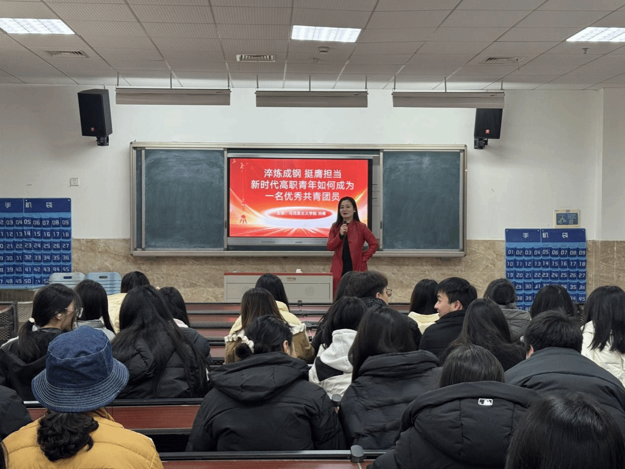 2025年12月19日下午,伟德马克思主义学院副院长刘倩以“淬炼成钢 挺膺担当——新时代高职青年如何成为一名优秀共青团员”为主题,为学员进行授课。