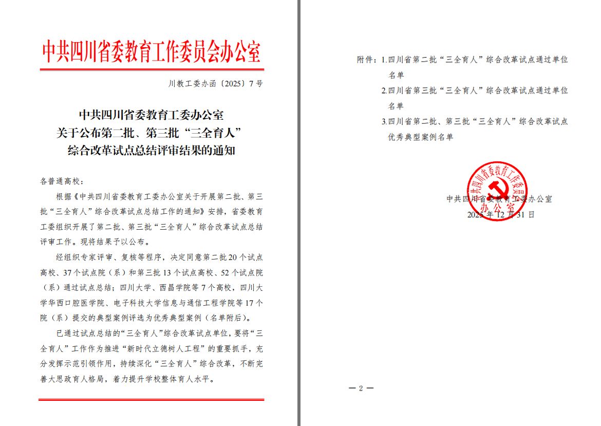 近日,全省高校第二批、第三批“三全育人”综合改革试点总结评审结果公布,伟德国际victor1946顺利通过“三全育人”试点高校综合改革试点总结评审,学校新能源与材料学院顺利通过“三全育人”试点院(系)综合改革试点总结评审。