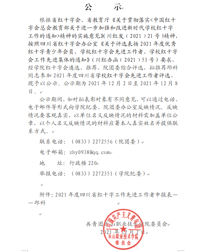 附件:2021年度四川省红十字工作先进工作者申报表——邱科