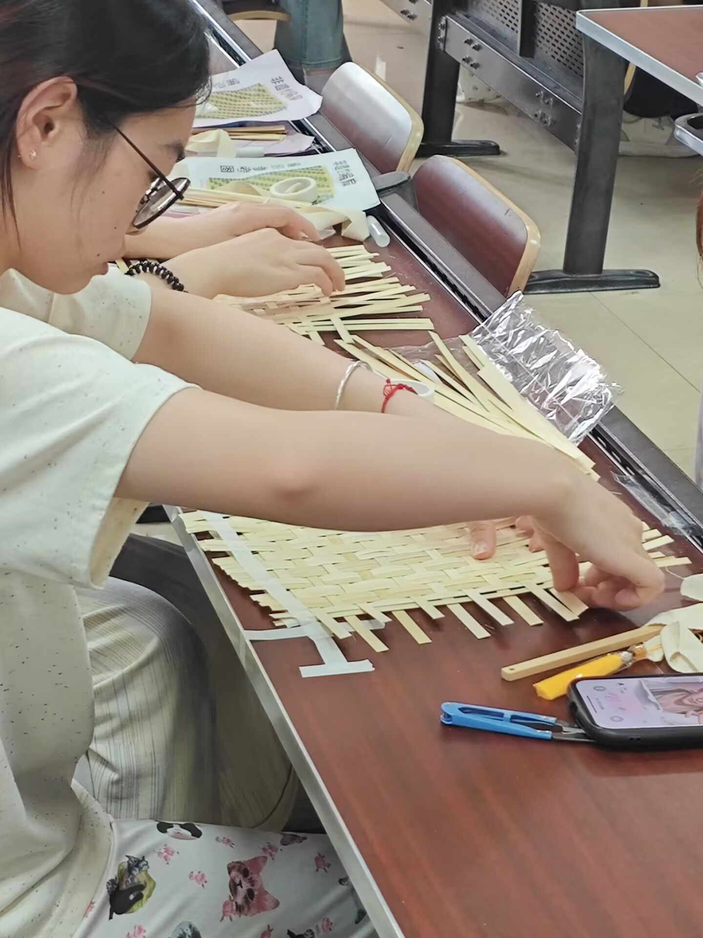 活动伊始,朋辈心理辅导社的负责人为同学们详细讲解了竹编扇子的制作方法。从选材到编织,从造型到装饰,每一步都蕴含着传统工艺的智慧与匠心。通过这一环节,同学们不仅更好地了解了竹编扇子的制作流程,更感受到了传统工艺的独特魅力,为接下来的动手实践奠定了坚实的基础。