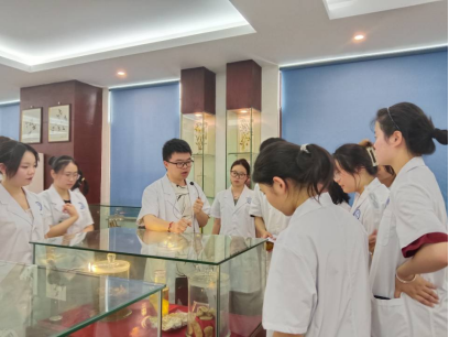 在中药标本馆和数字标本室,学生们听取了工作人员结合乐山市中药产业发展现状,利用数字化影音形式向大家普及的中药知识及乐山特色中药材产地、功效和种植经营情况,大家对常见中药饮片真伪的知识和“药食两用”药材等展现出极大兴趣。