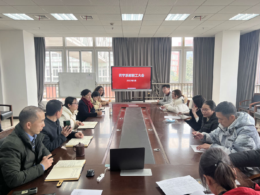 为进一步深入贯彻落实学院教职工大会精神,2023年2月25日,药学系全体教职工在201会议室召开新学期教职工大会,各分管领导分别对上学期部门工作进行总结并科学安排部署了新学期重点工作,会议由药学系总支书记徐娇主持。