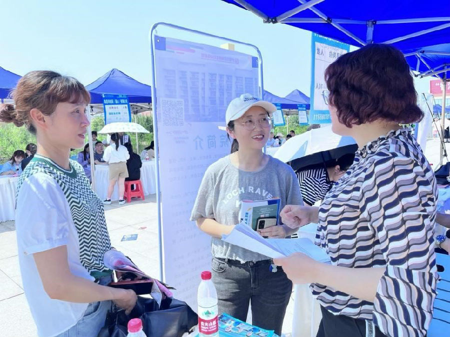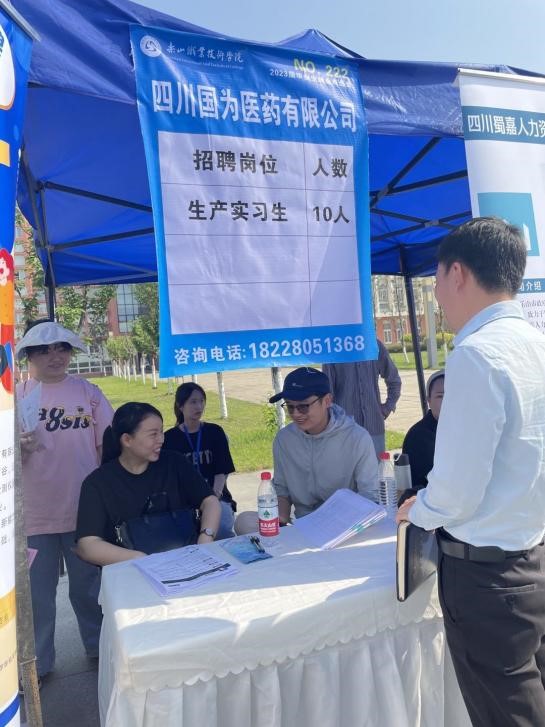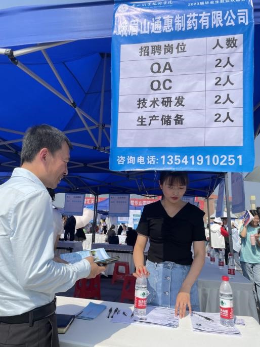 双选会现场,生物医药学院党总支书记徐娇、副院长(主持工作)李喜安、副院长朱链链、药学专业负责人岑菲菲、药物制剂技术专业负责人孙川、学生科科长张俊、分团委书记朱晓琴在双选会现场了解企业用人情况,并与参与竞聘的同学进行亲切地沟通、交流。据统计,我院对应的企业单位共收到1000余份简历。