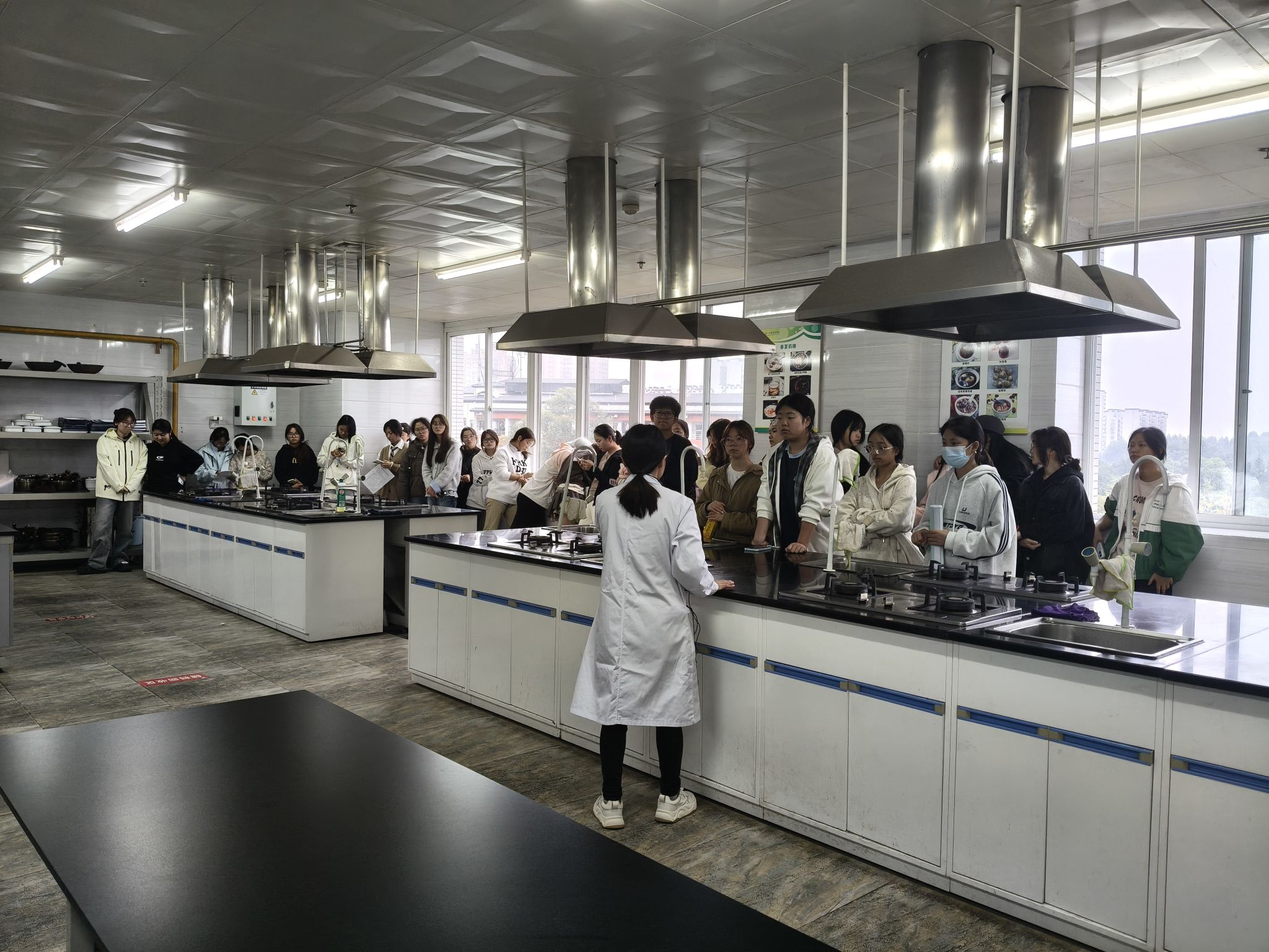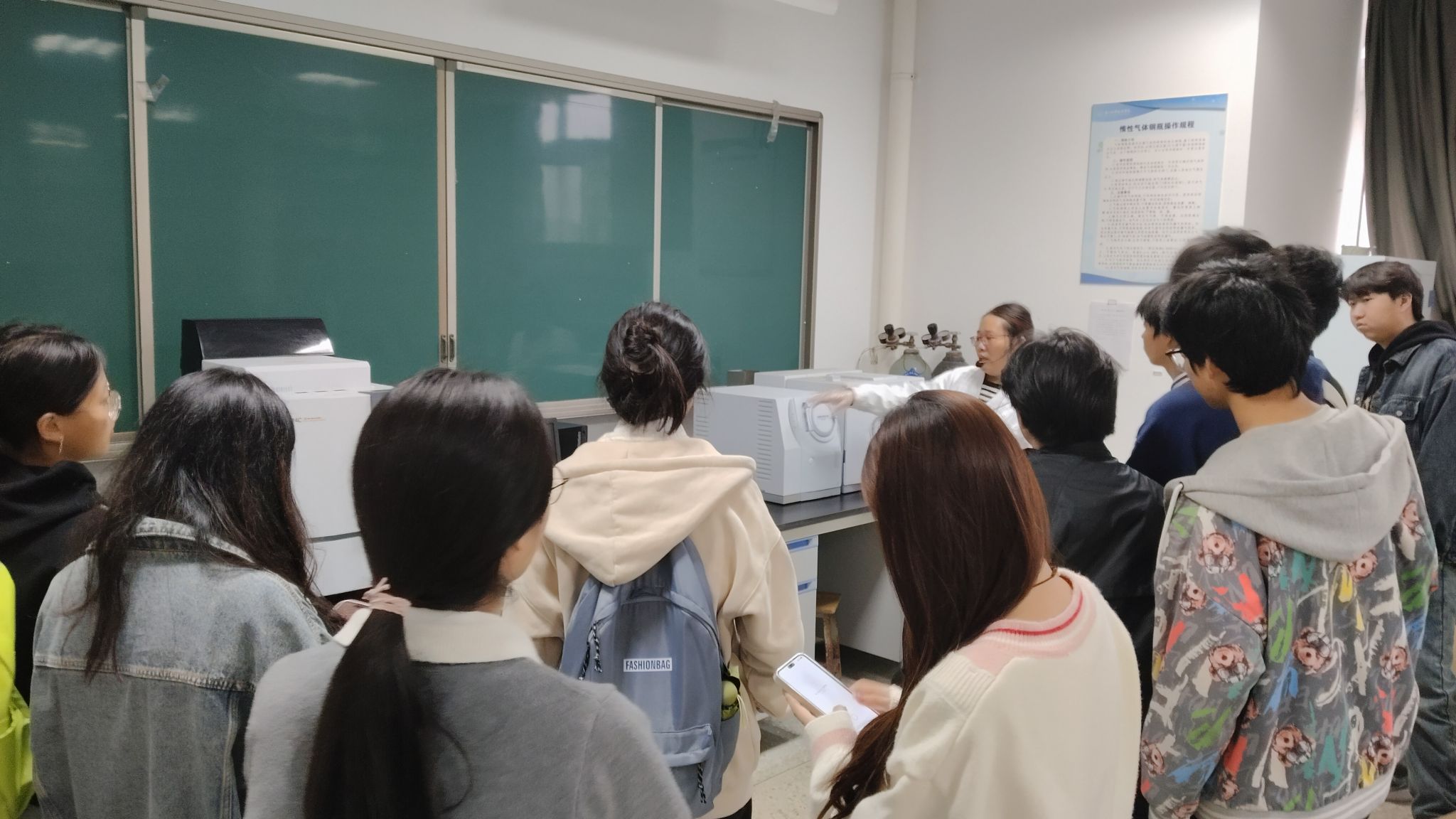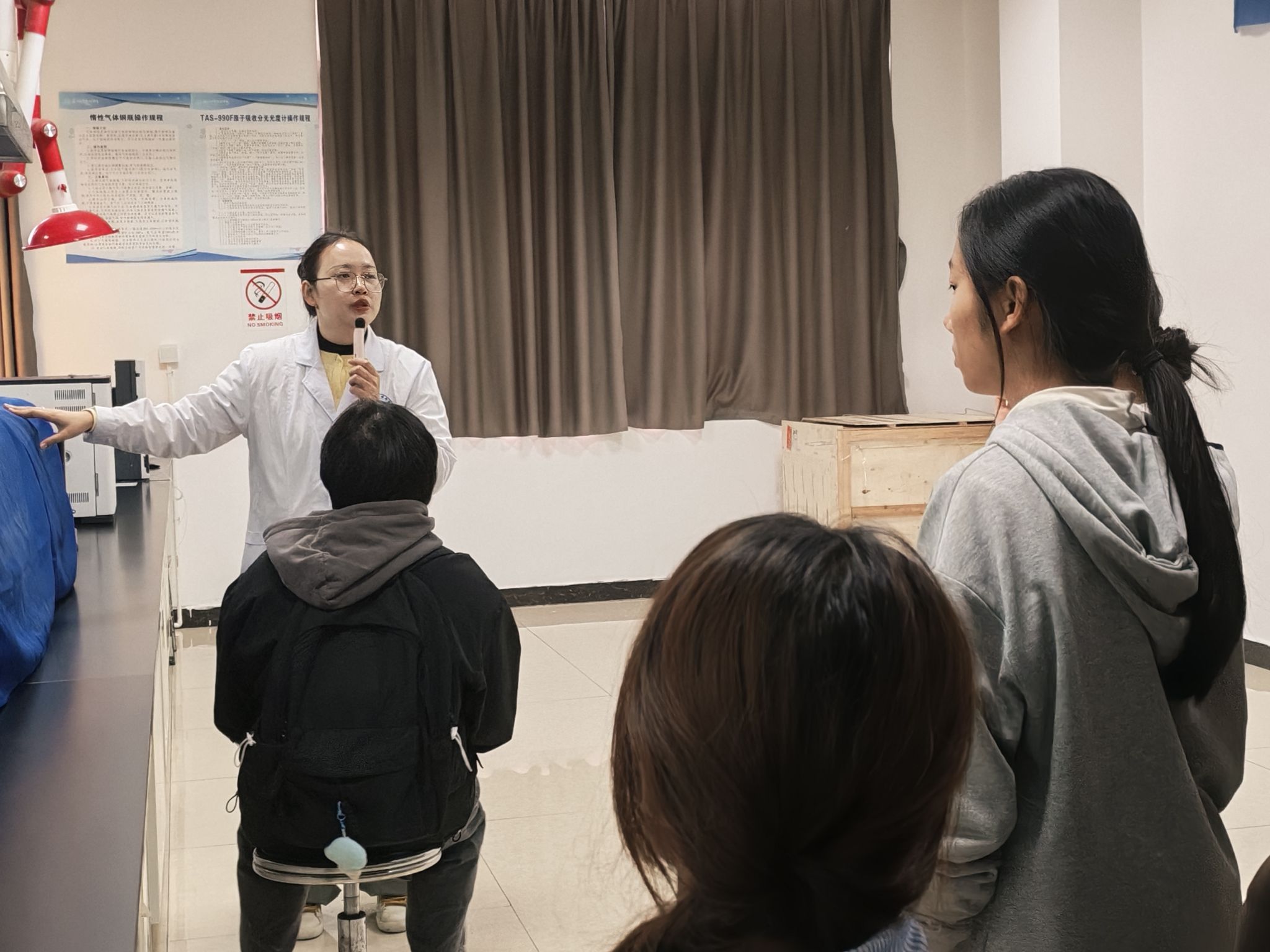 在随后的实训室安全认知学习中,各专业教师就个人防护用具的正确佩戴、仪器设备使用前的安全检查、紧急喷淋装置的使用等关键环节进行了系统指导,旨在确保每位学生掌握必备的安全技能,共同维护安全、规范的实训教学环境。