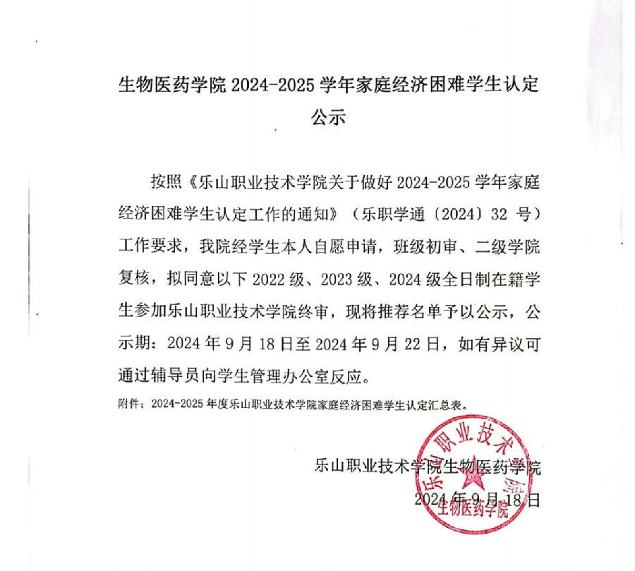 下一条: 生物医药学院 2025届困难毕业生求职创业补贴评审结果公示