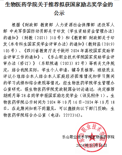 上一条: 生物医药学院关于推荐拟获国家助学金的公示