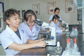 1. 中药鉴定实训室:实训室外围和室内设有中药材及中药饮片文化展示墙,配备有30多台高级生物显微镜,存贮有500余种中药材及中药饮片的实物及其标本,供学生进行中药性状识别和真伪鉴别等实训操作。